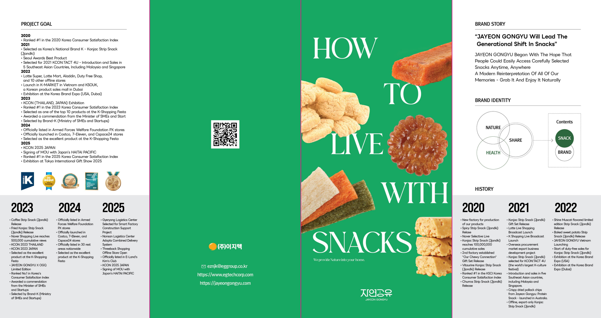 EGTECH is a Korea-based distribution and marketing–driven food company and the brand owner of Jayeon Gongyu. We make better-for-you snacks that feel light, easy to enjoy, and truly satisfying—ideal for everyday moments across retail and food-service. Our portfolio centers on konjac-based chewy treats, protein-forward bites, and convenient formats with balanced nutrition, practical portions, and approachable flavors.