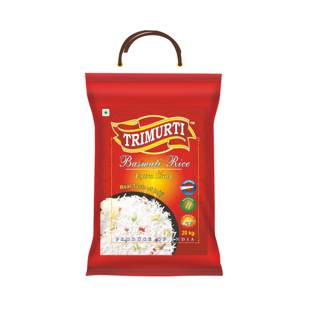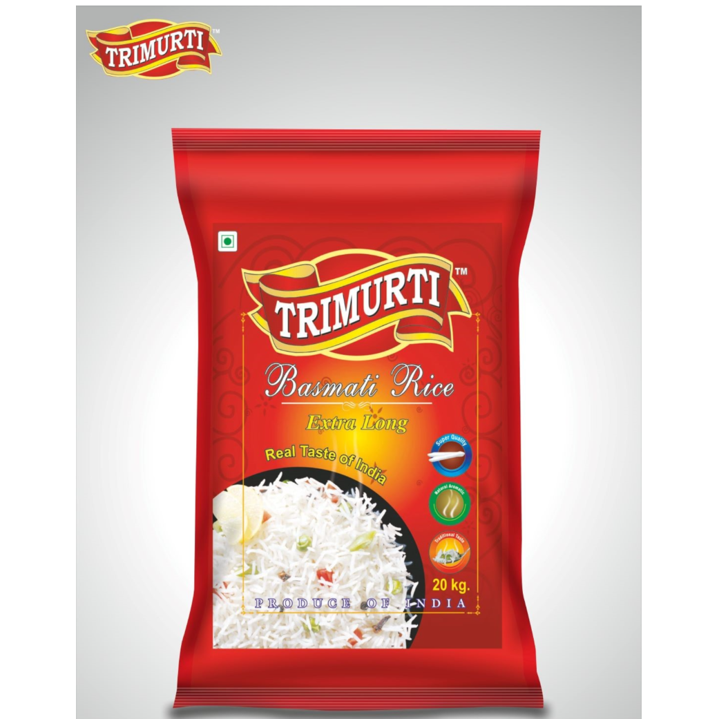 Trimurti Basmati Rice, Extra Long Grain Rice cooks up light, fluffy, and separate making them perfect for rice salads, fried rice, rice pilafs, the ever-convenient and delicious oven-baked casserole makes your meal delicious and tasty. It comes in different variants : Raw/White/Milled, Sella/Parboiled Cream, Golden Sella/Parboiled golden ,Steam, Brown Basmati rice & available in a packing of 1 kg,5 kg,10 kg & 20 kg.