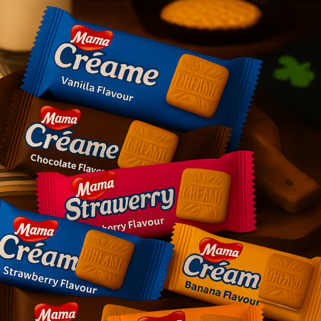 MAMA Creame Biscuits are very delicious,tasty and available in strawberry,chocolate,banana and vanilla flavours