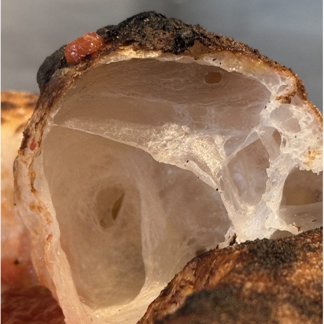 The result is a high, elegant cornicione—golden, airy, and delicately crisp on the outside, yet soft and cloud-like within. The base remains thin, flexible, and balanced, capable of carrying both classic and contemporary toppings without losing integrity. Every bite is digestible, clean, and layered in flavor, thanks to slow maturation and carefully managed enzyme activity.