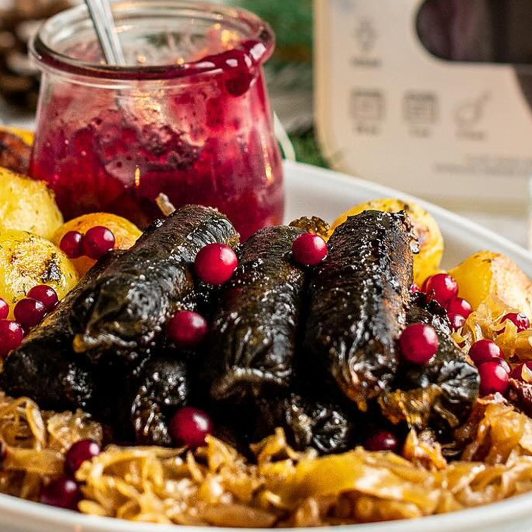 Ingredients: Water, barley groats, pea protein, rapeseed oil, oat protein, corn starch, stabiliser (E461), carrageenan, yeast extract, vegetable charcoal, acidity regulator (acetic acid), onion powder, garlic powder, barley malt extract, salt, paprika, marjoram, nutmeg, black pepper, oregano, cloves. Shell: Edible vegan shell (carrageenan, water, glycerin, starch).