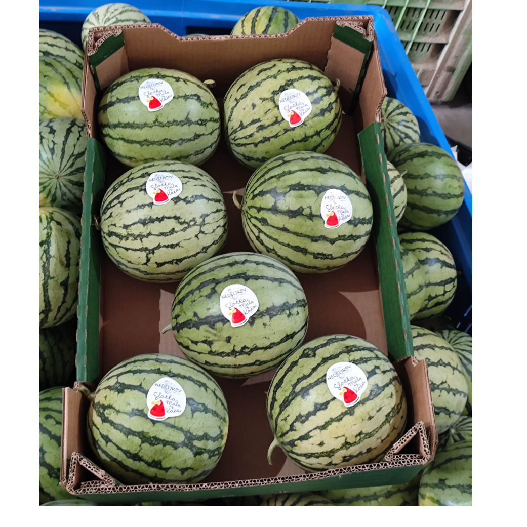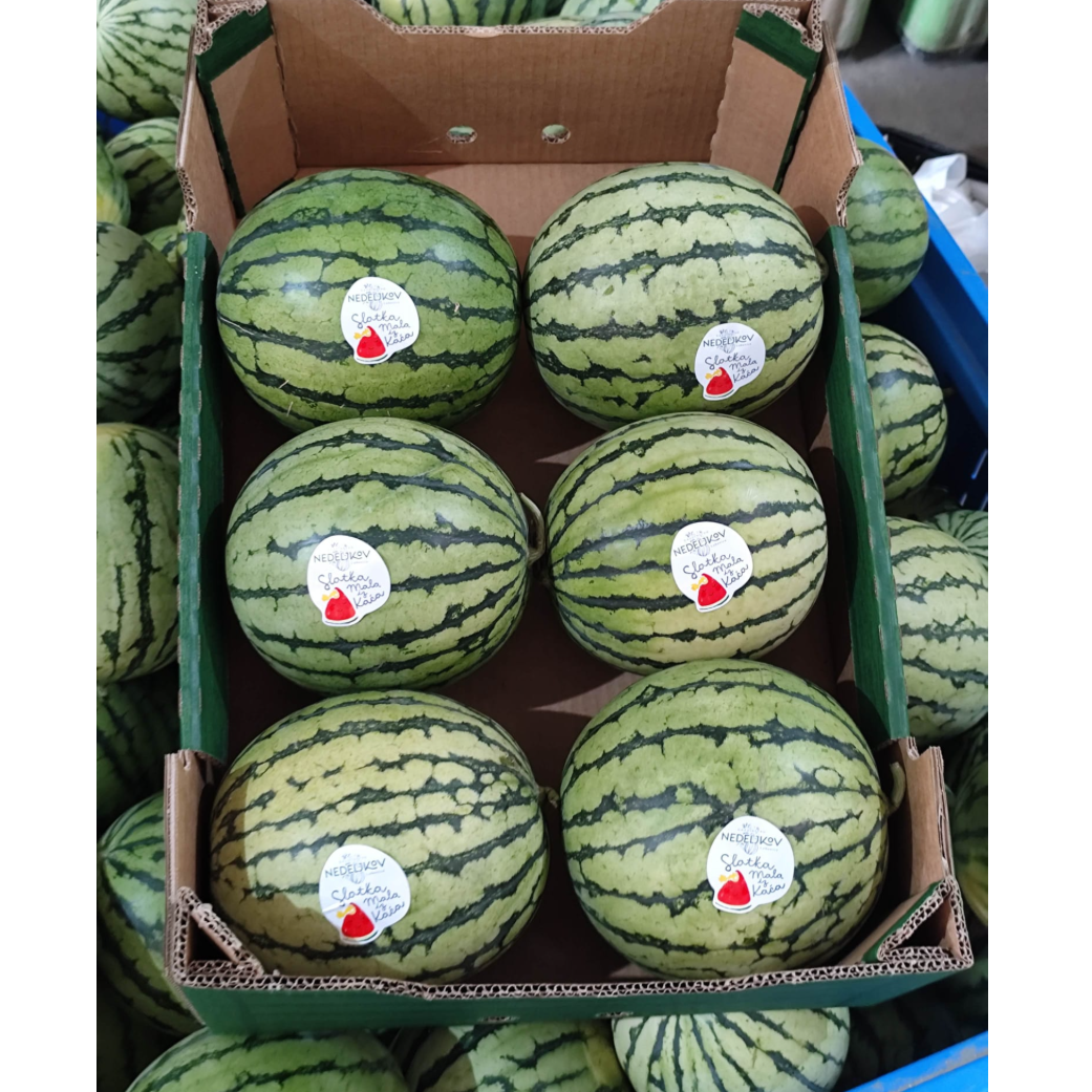 Our mini watermelon has an average weight of 2.5 kg, extremely thin skin, crispy, red, juicy and with micro-seeds. We pack the pumpkin in 60x40 boxes, 7-10 pieces fit in one box, the average weight of boxes is 15 kg.