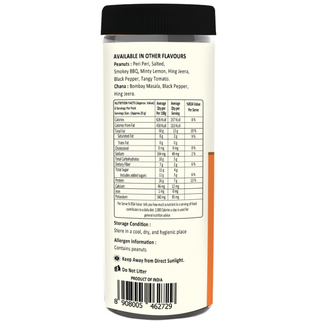 Happy Hours Bombay Masala Peanuts are crunchy, roasted peanuts coated with bold Indian-style spices.Perfectly spiced and irresistibly crunchy, they’re the ideal snack for every happy moment.