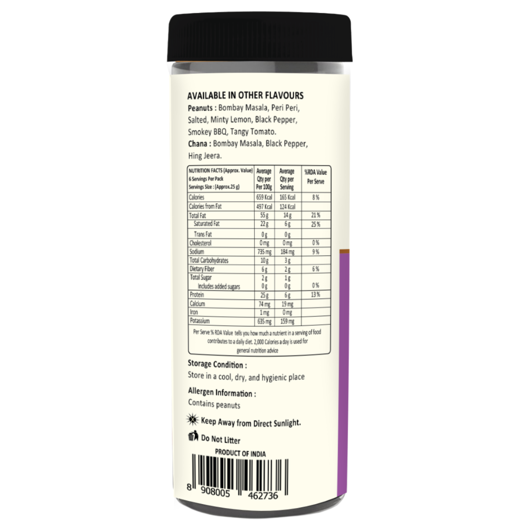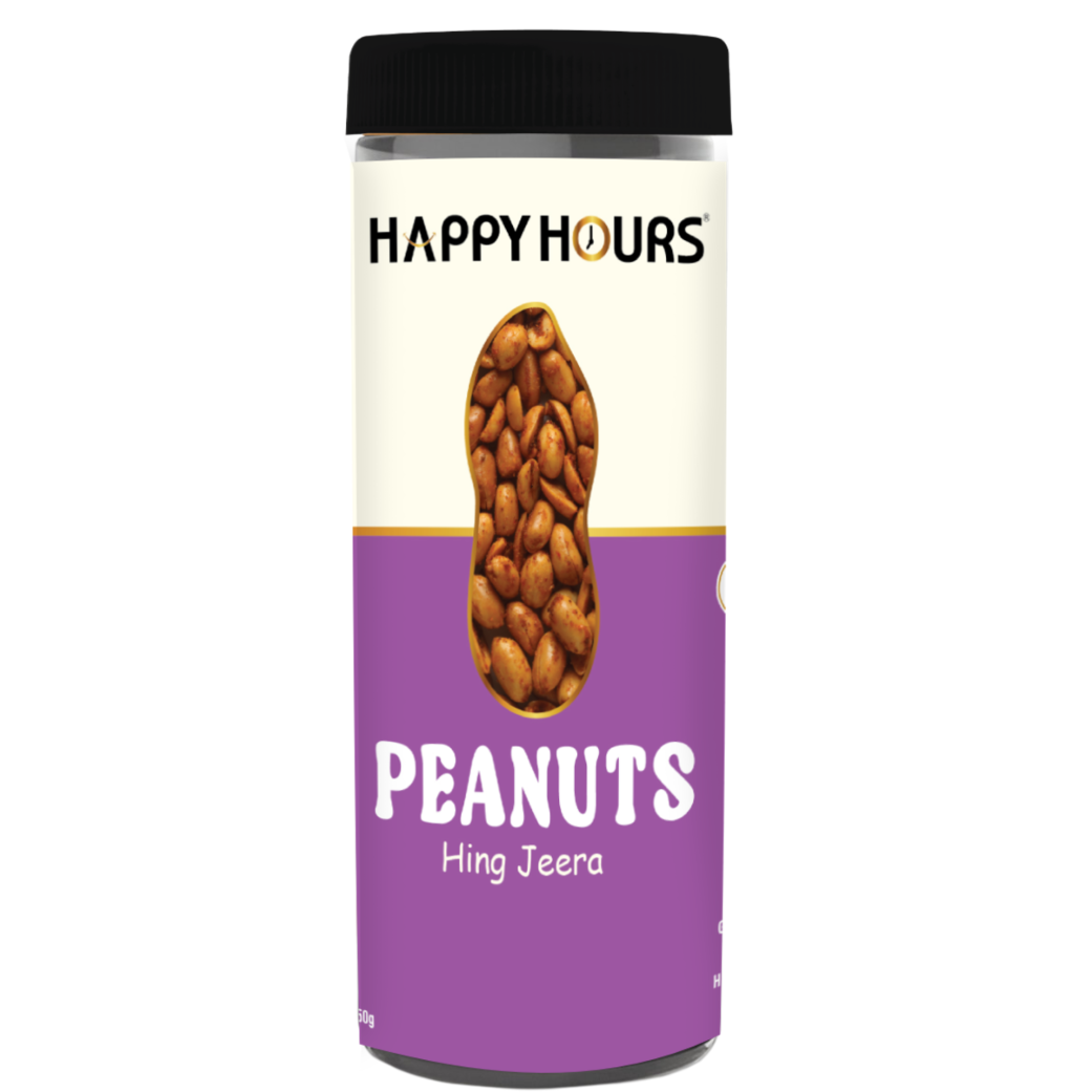Spice up your snack time with Happy Hours Hing Jeera Peanuts! Crunchy, flavorful peanuts tossed in a zesty blend of hing (asafoetida) and cumin, delivering the perfect balance of tang and spice. Ideal for munching anytime—be it tea-time, parties, or just a quick snack fix!