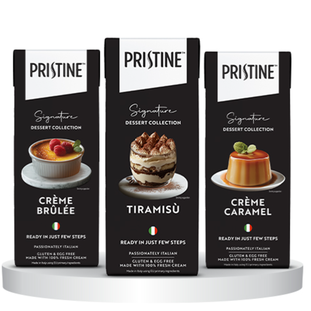 Pristine Desserts present a refined, ready-to-use range of premium classics including Tiramisu, Panna Cotta, Crème Brûlée, and Crème Caramel, expertly crafted for professional kitchens. Designed for consistency, convenience, and superior quality, each dessert delivers authentic taste—from coffee-infused sponge with creamy mascarpone to silky panna cotta, rich custard with caramelized sugar, and smooth crème caramel with golden sauce. Ideal for hotels, restaurants, and catering, Pristine Desserts ensure effortless preparation, reliable performance, and an elevated dessert experience every time.
