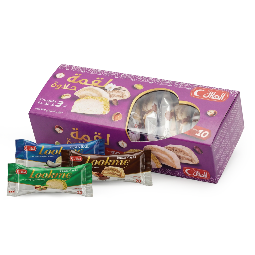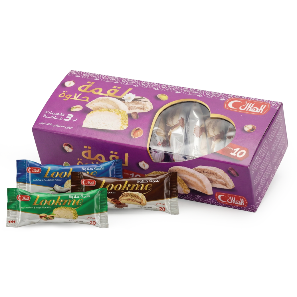 ALHELAL Mix Mini Halva Bars feature three popular flavors — Coconut, Pistachio, and Chocolate Vanilla — in a convenient 20 g mini bar format.