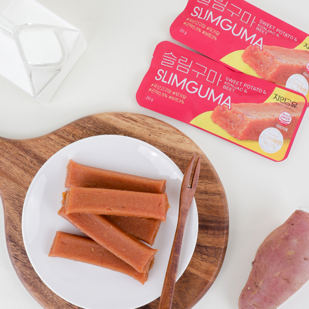 SLIMGUMA is a nutritious and satisfying honey sweet potato stick made with sweet potatoes blended with konjac and red beet. With its soft and chewy texture, it serves as a convenient meal-replacement snack. Individually portioned in small packs, it is easy to carry, hygienic, and suitable for room-temperature storage, offering excellent distribution efficiency. Free from sweeteners, preservatives, and artificial colors, Slim Guma is a safe and trustworthy choice for health-conscious consumers. Made exclusively with plant-based ingredients such as konjac, sweet potato, and red beet, it aligns well with current healthy snack trends. In addition, Slim Guma is produced in facilities certified with FSSC 22000 and HACCP, ensuring a hygienic and safe food production environment.