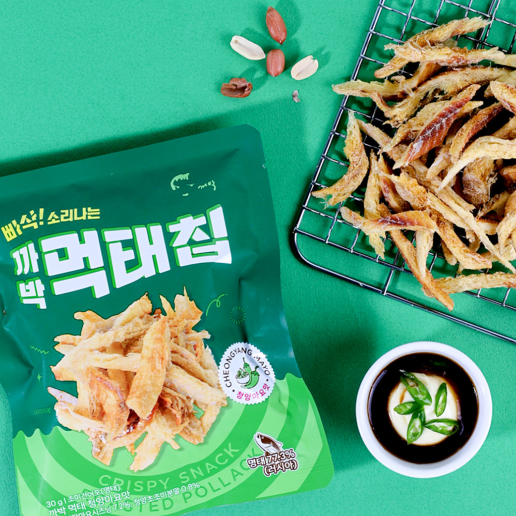 This pollock snack is made without deep-frying, delivering a light and crispy texture. By avoiding frying, it preserves the naturally nutty flavor and savory umami of pollock, offering a clean and enjoyable taste with a crisp bite that is never tough. Available in a variety of flavors such as Honey Butter and Spicy Mayo, it offers a wider range of choices to suit different consumer preferences. Perfect as a snack or a pairing with beer and other alcoholic beverages, it comes in convenient packaging that makes it easy to carry and store, so it can be enjoyed anytime, anywhere.