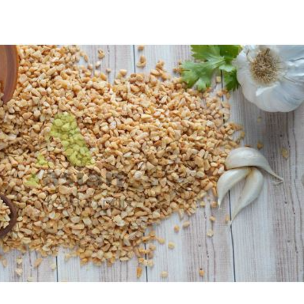 Name Dehydrated Garlic Chopped Size 3mm to 5mm, 5mm to 8mm Quality "A" Grade, Commercial Grade, "B" Grade. Packing 20Kg Net weight in natural white poly bag inside five ply strong carton. Origin India