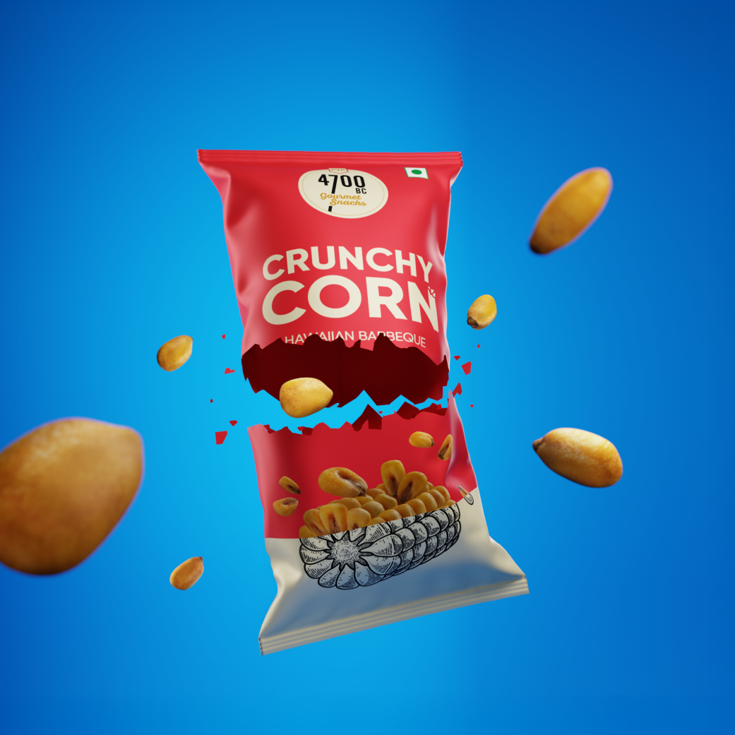 4700BC Crunchy Corn is a smarter, bolder take on everyday munching. Made from whole corn kernels that are roasted, not fried, this range delivers an intense crunch with clean, satisfying flavour in every bite. It’s the perfect upgrade to peanuts and namkeen — familiar, but far more exciting.