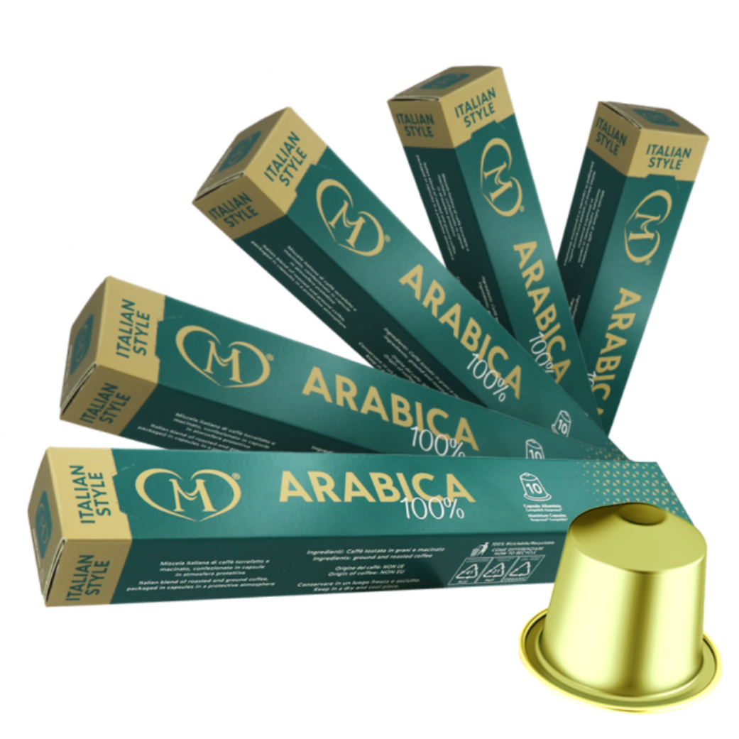 Coffee Arabica 100% - Nespresso Aluminium Compatible Caps. - A Modo Mio Compatible Caps. - Dolce Gusto Compatible Caps. - Roasted Ground Coffee