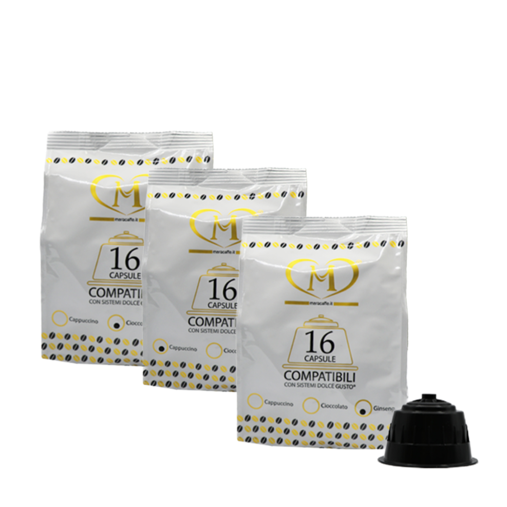 Chocolate - Cappuccino - Ginseng - Soluble Hot Drink - Dolce Gusto Compatible Caps - Compatible Capsules