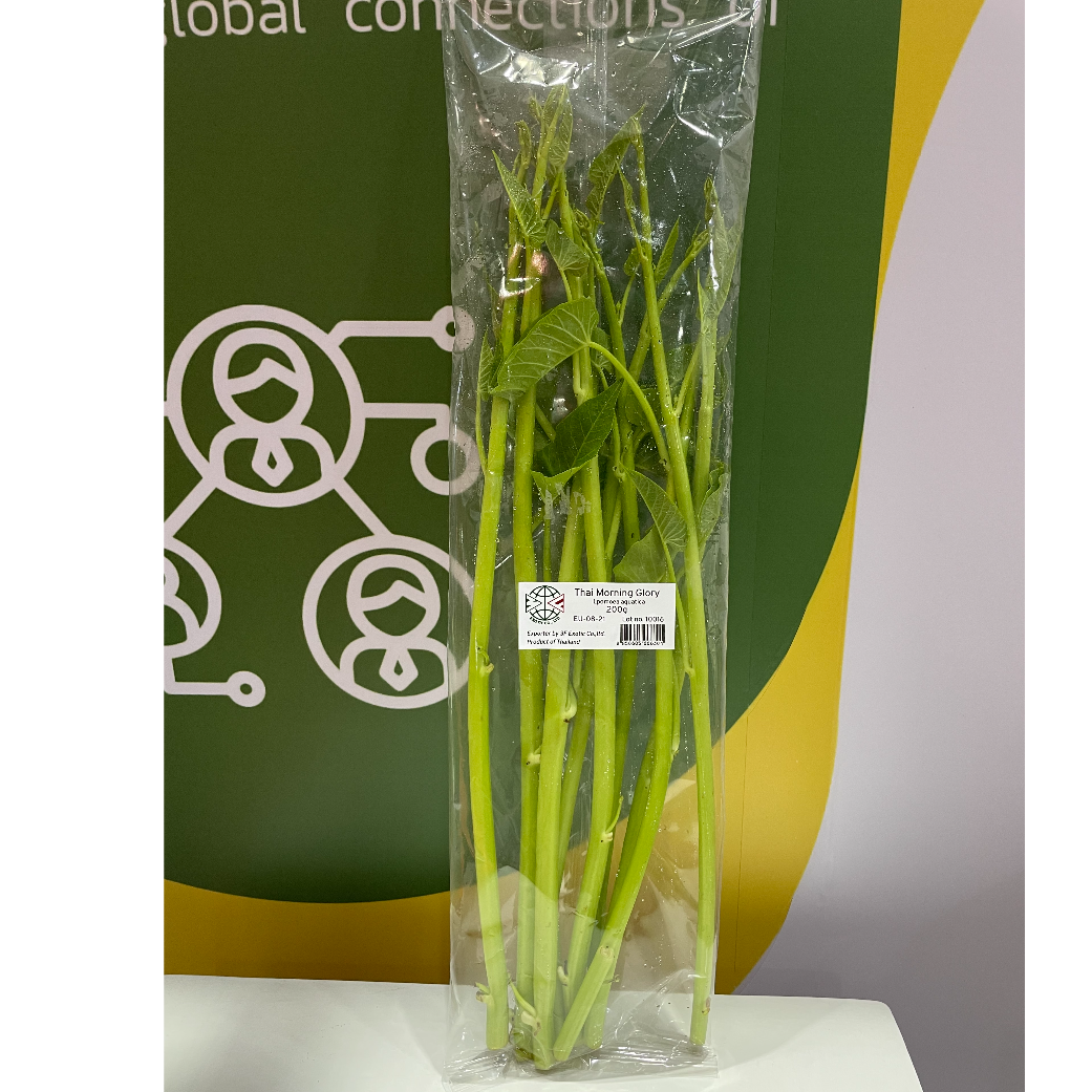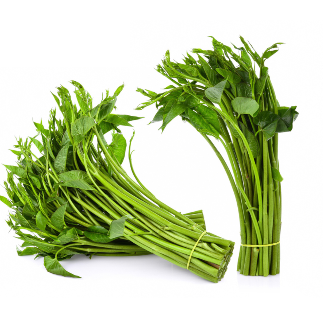 Thai Morning Glory, also known as Water Spinach, is a popular leafy green vegetable widely used in Asian cuisine. It features long, tender stems and vibrant green leaves with a crisp texture and mild, slightly sweet flavor. Thai Morning Glory is best known for its use in stir-fried dishes, soups, and salads, especially the famous Thai dish Pad Pak Boong.