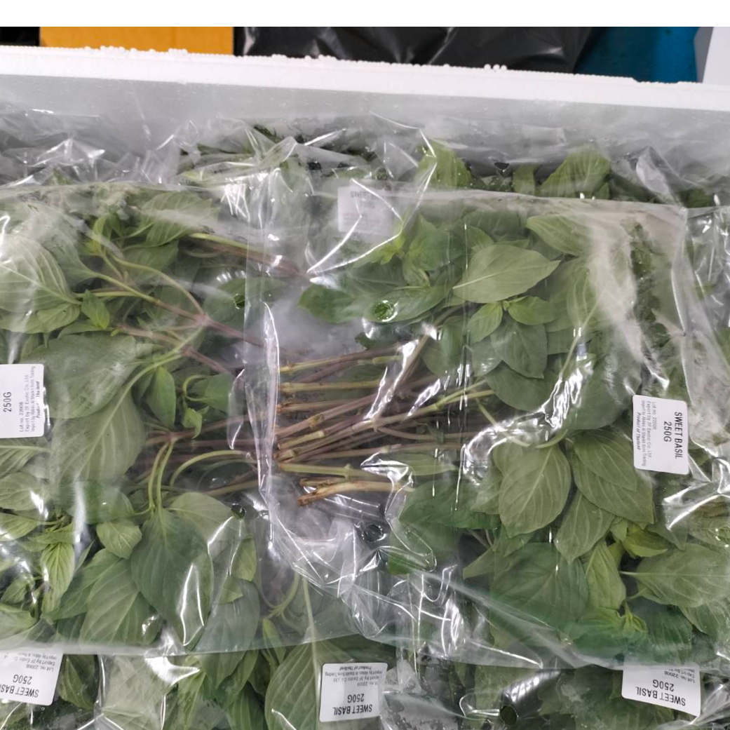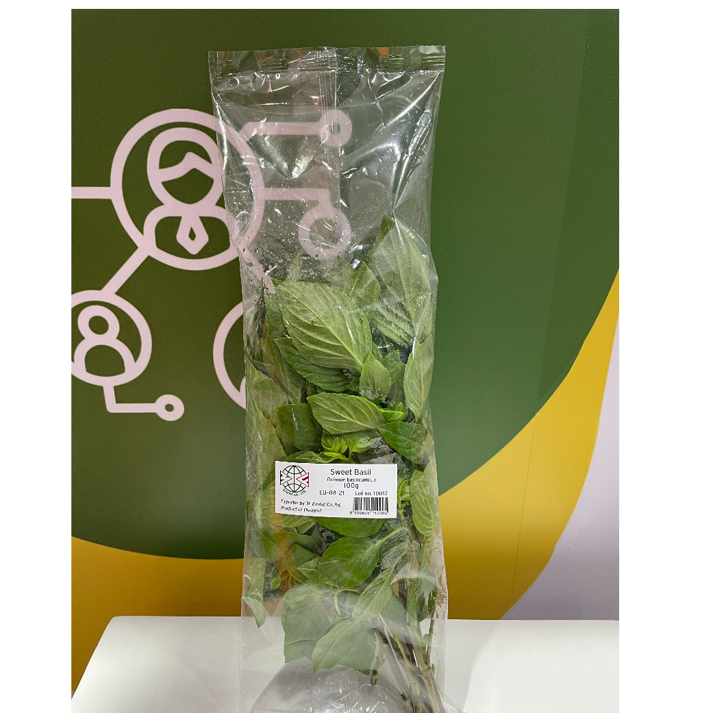 Sweet Basil is a fragrant fresh herb widely used in international and Asian cuisines. It features bright green, tender leaves with a sweet, slightly peppery aroma. Thai-grown sweet basil is known for its freshness and strong fragrance, making it ideal for fresh culinary use, foodservice, and retail markets.
