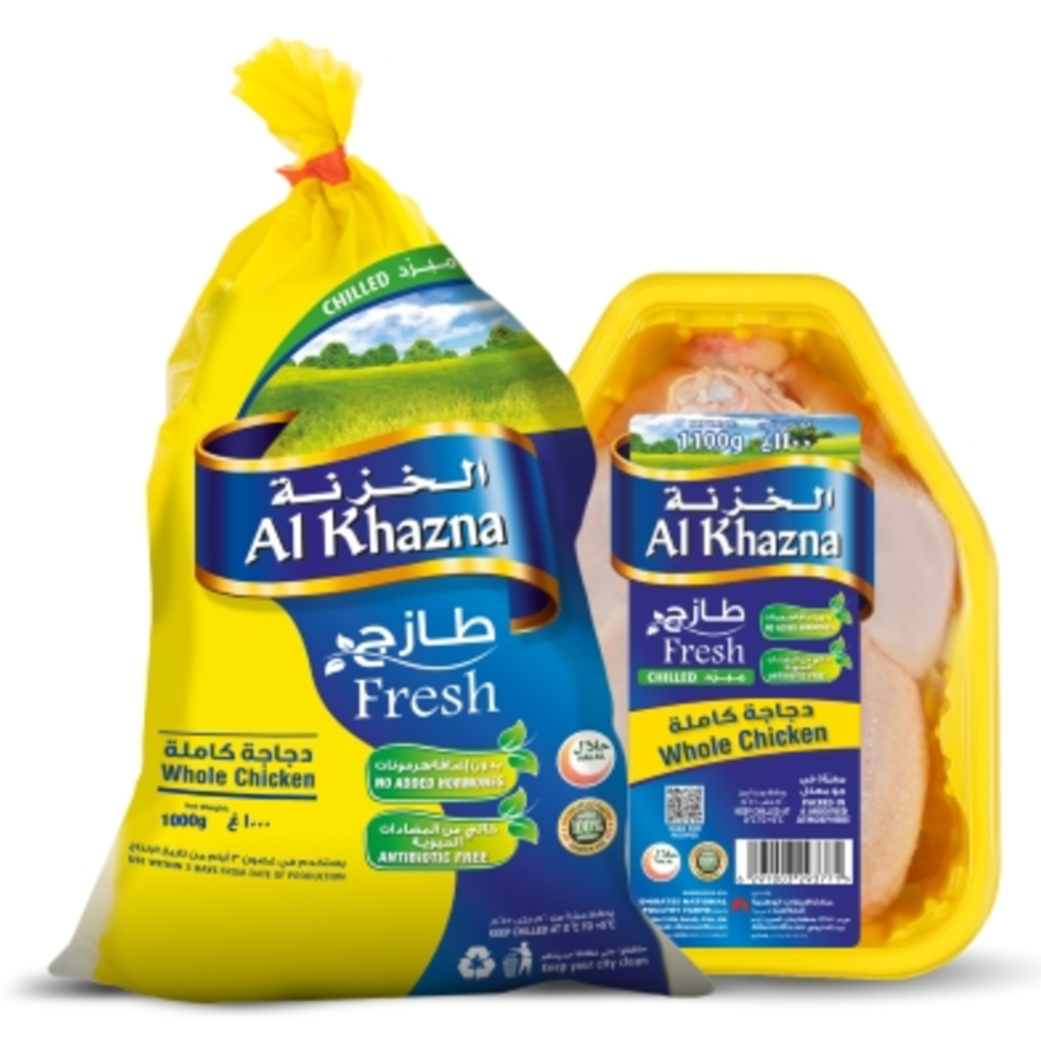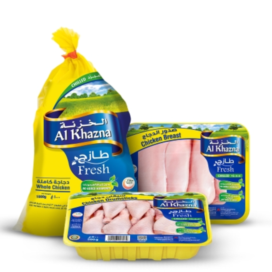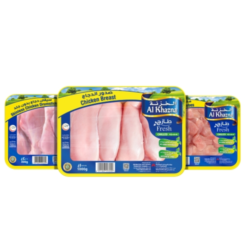 Al Khazna’s fresh chicken is produced in our local farm in Al Ain, UAE. Naturally fed, free of antibiotics and added hormones. Al Khazna range of products offers whole chicken, portions and pre-cut parts to cater to every consumer need.