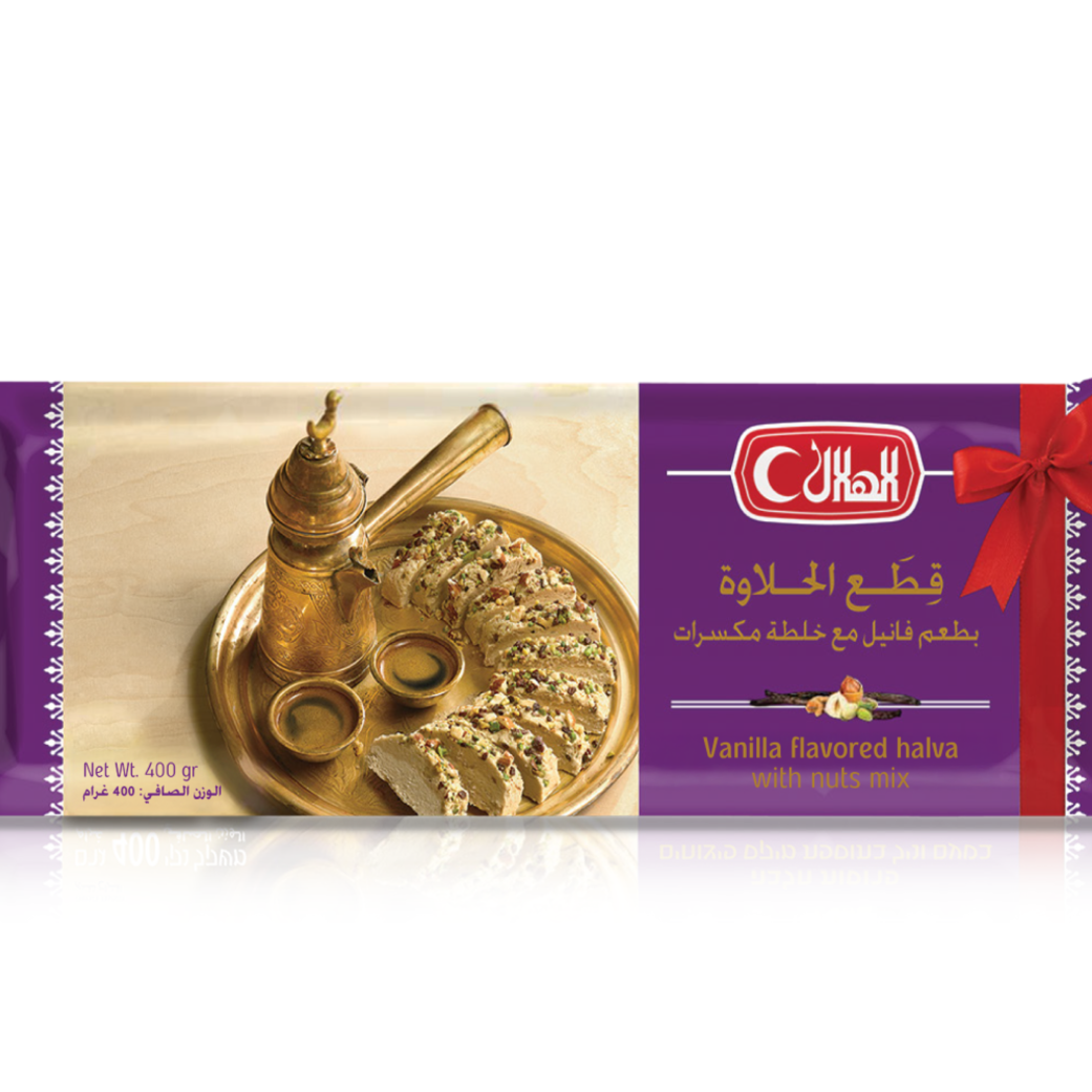 Vanilla Halva Pieces with Nuts Mix 400 g is made from high-quality tahini and blended with natural vanilla flavor, then enriched with a crunchy assortment of premium nuts. The result is a smooth yet textured halva with a well-rounded taste profile and authentic heritage appeal. Produced under strict quality and food safety standards, this product is designed for international distribution and shelf stability. The pre-sliced format ensures ease of use, portion control, and attractive presentation, making it suitable for supermarkets, specialty food stores, hospitality, and gifting occasions. A perfect fusion of tradition and quality, trusted by consumers across global markets.
