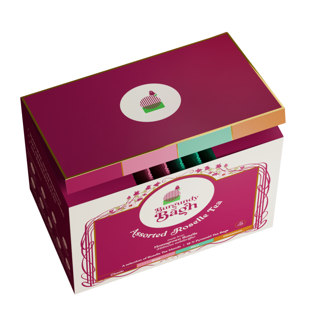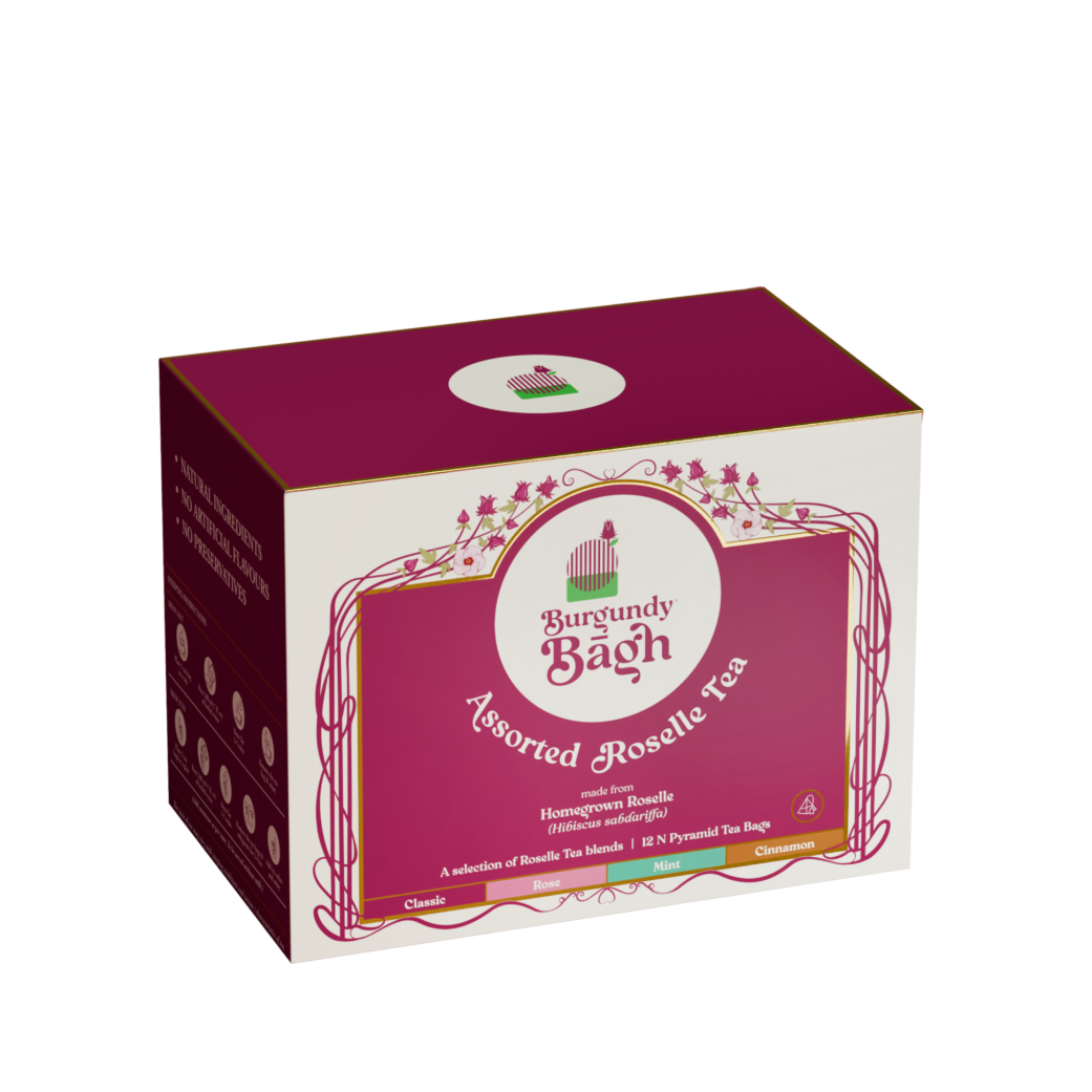 A premium assortment of Roselle tea in 4 refreshing flavors: