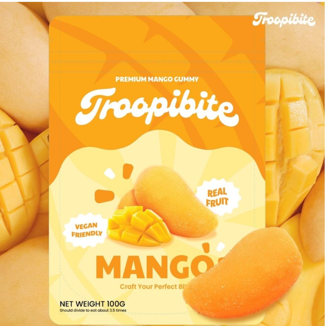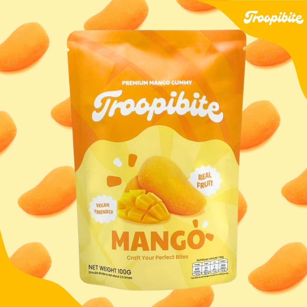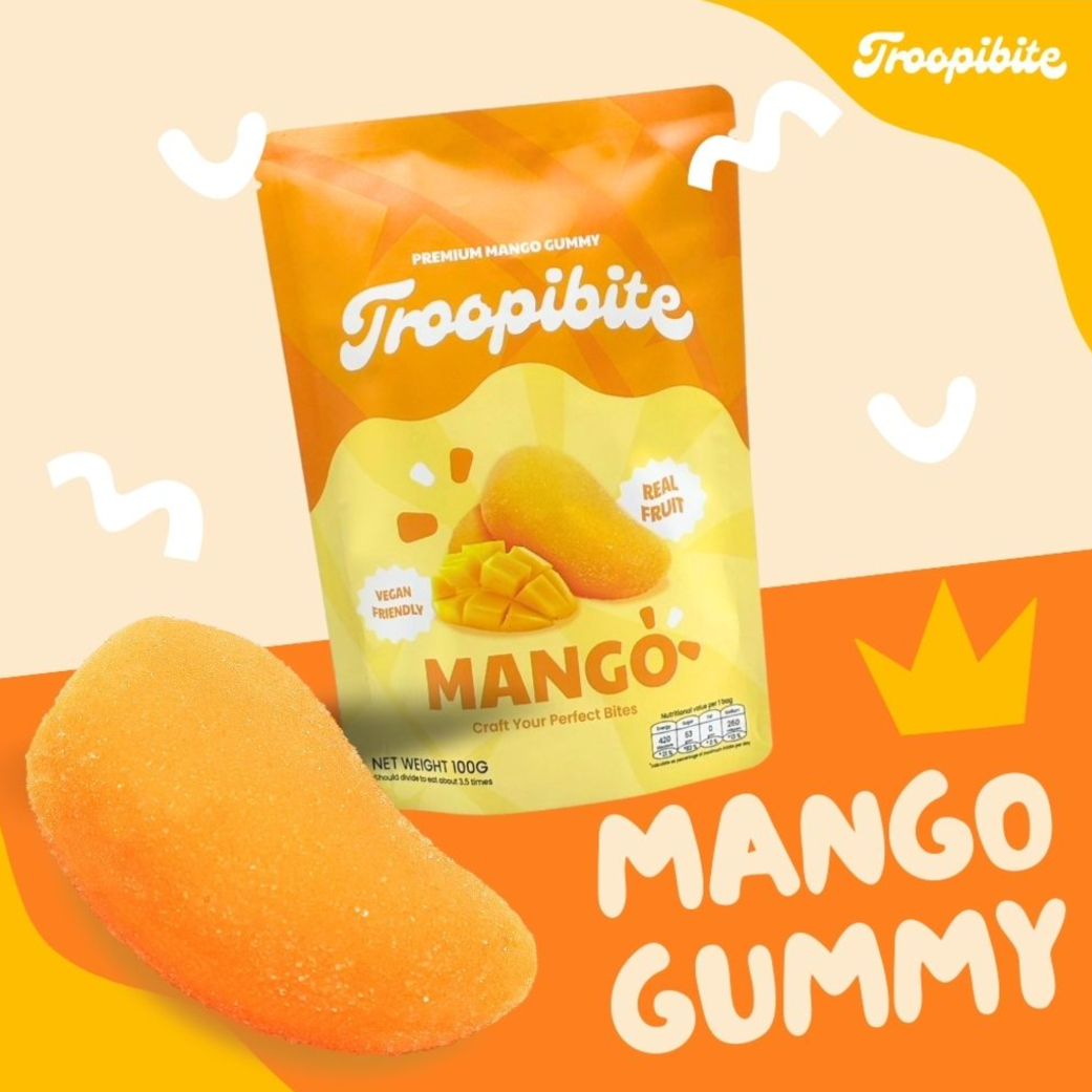 Troopibite Real Mango Gummies, Made with Real Fruit, Vegan Chewy Treats, Healthy Fruit Snacks, Allergy-Friendly, Kid-Friendly, Fruit Snacks Bulk, Plant-Based Gummy Bites