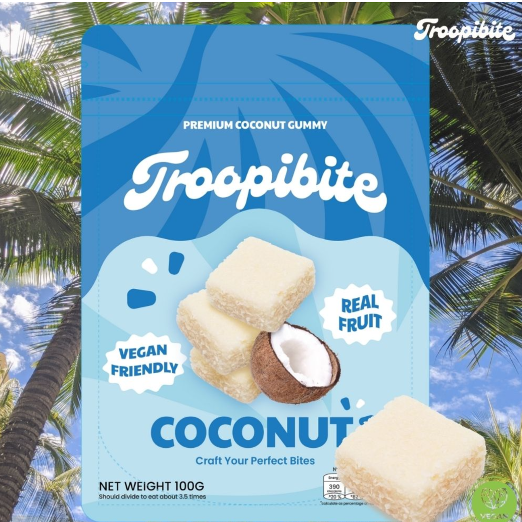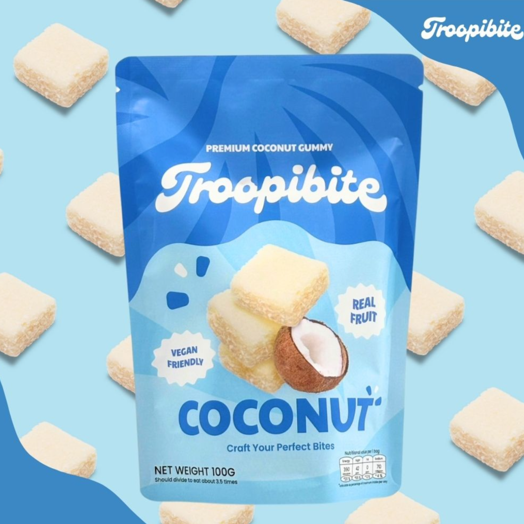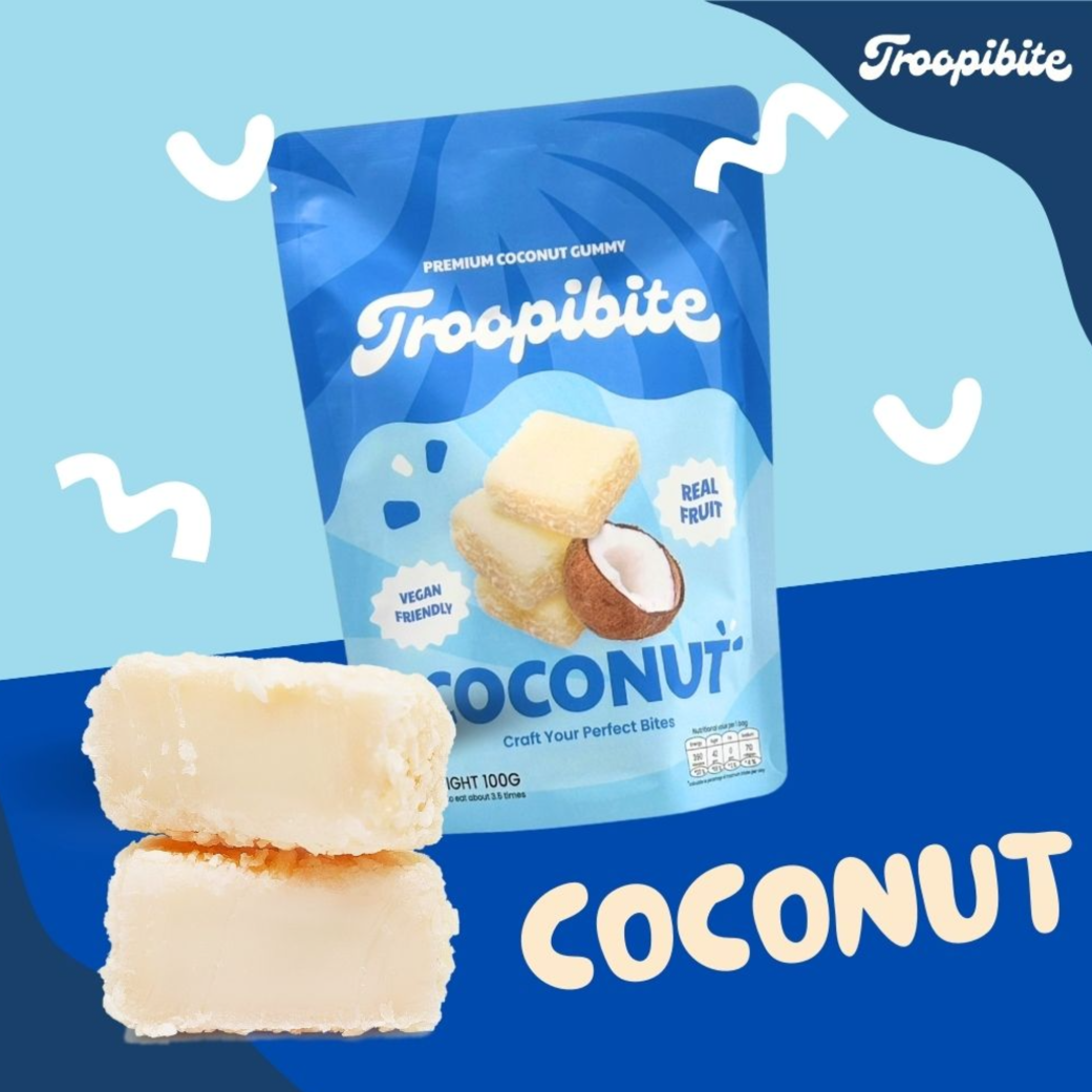 Troopibite Real Fruit Coconut Gummies, Vegan Chewy Candy Made with Coconut Milk, Healthy Fruit Snacks for Kids & Adults, Plant-Based Gummies Fruit Snacks