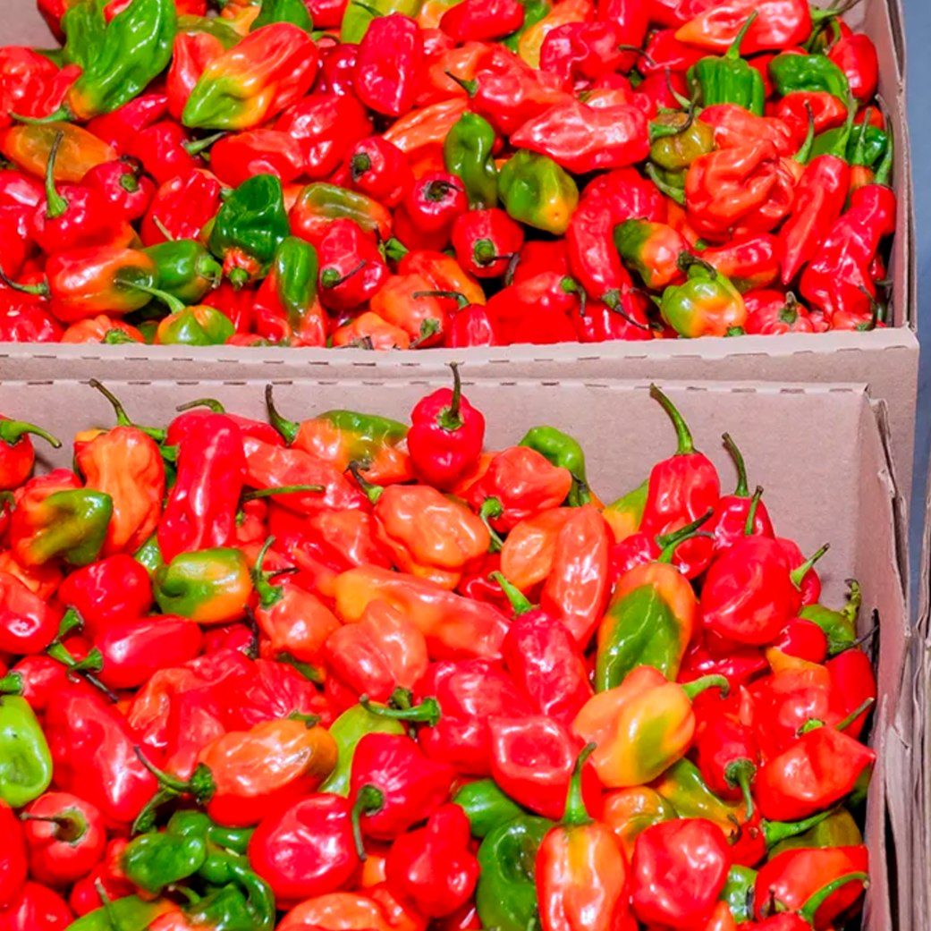 Fresh Habanero Chilies sustainably grown in Rwanda. Hand-harvested at peak ripeness, carefully sorted, graded, and packed under strict quality standards. Known for their bright red and yellow colors, intense spiciness, and consistent quality, they maintain freshness and shelf life under cold chain management for international markets.
